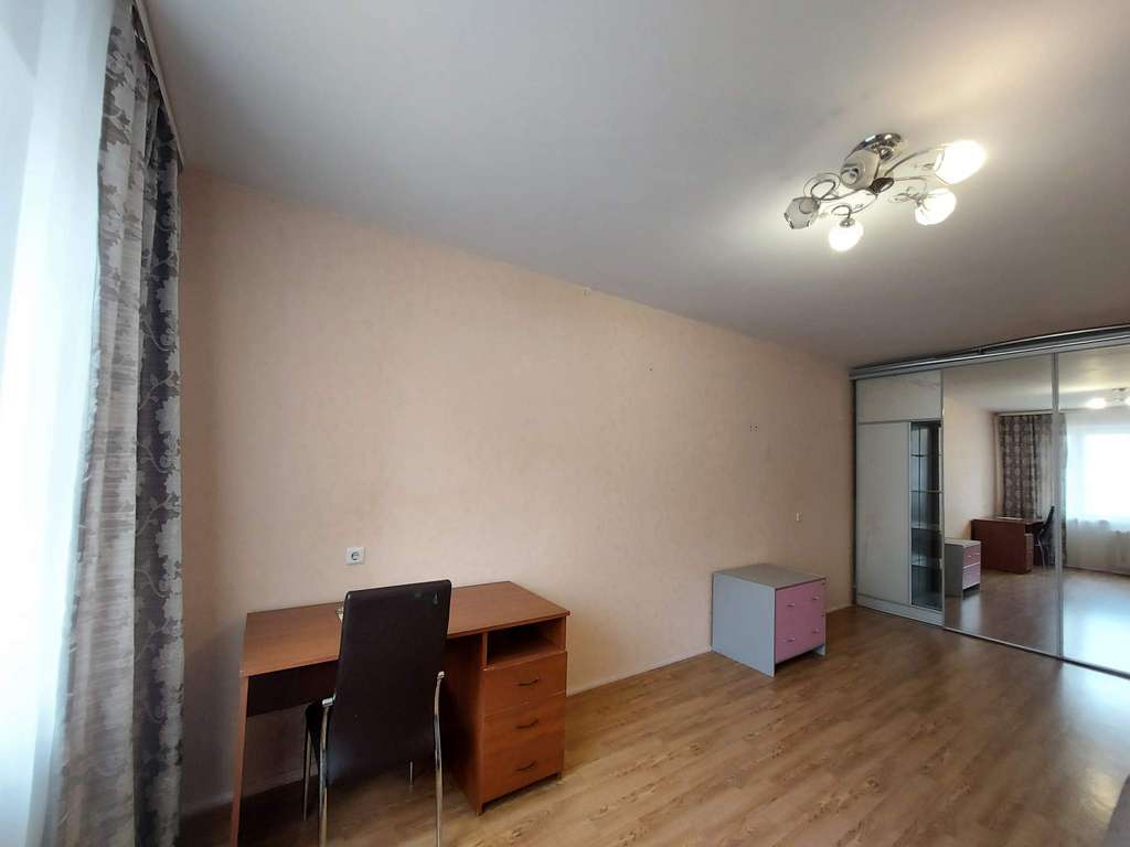 - удобная мебель: кухонный гарнитур, обеденная зона, вместительный встроенный шкаф и мягкий диван;