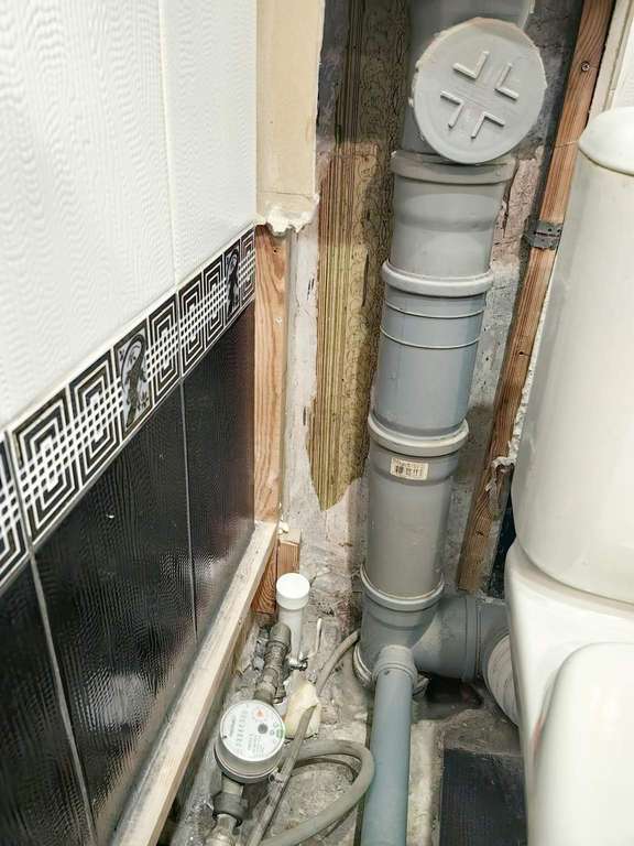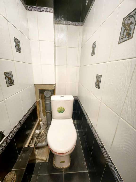 Раздельный санузел, плитка, в туалете незавершенный ремонт (надо закрыть трубы) . Все трубы поменяны, в том числе труба на общий стояк.
