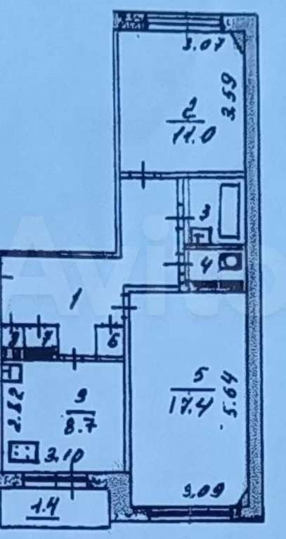Комнаты 17,4 и 11 м. кв. Везде стеклопакеты, теплые длинные чугунные батареи.