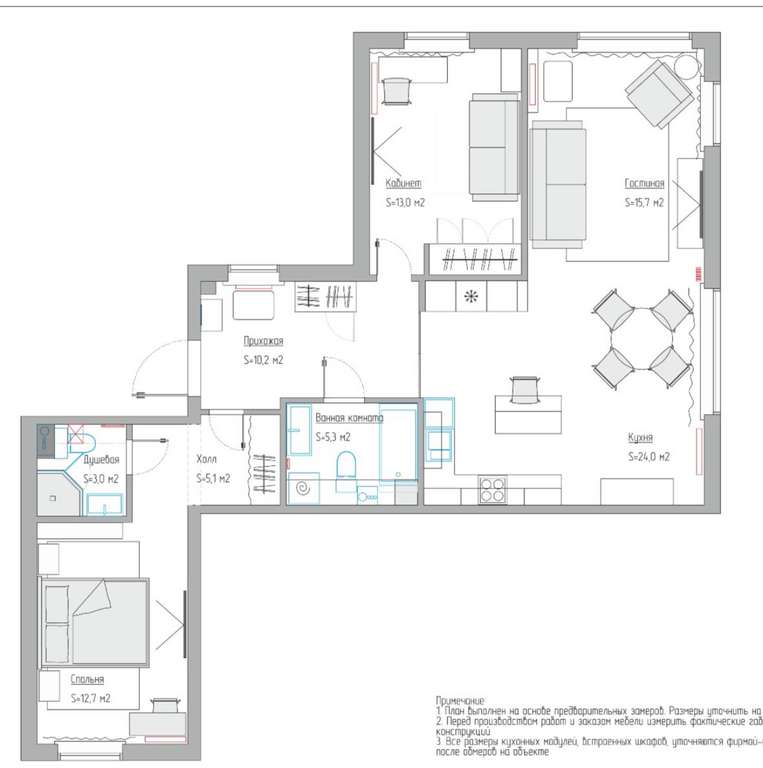 - Индивидуальный дизайн-проект: каждая деталь оформления выполнена профессиональным дизайнером специально под данный объект, создавая атмосферу элегантности и гармонии, сочетающую классические элементы с современными тенденциями дизайна.