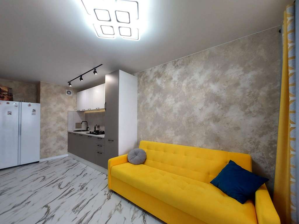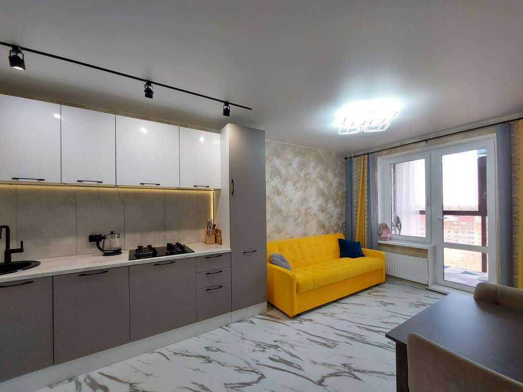 Просторная комната, кухня-гостиная площадью 16 кв. м со встроенной мебелью и бытовой техникой, остекленная лоджия с панорамным остеклением и выходом из кухни, ее метраж позволяет создать дополнительное место для отдыха. В квартире выполнен качественный, современный, новый евро ремонт: плитка на кухне, ламинат, ванна плитка, счетчики на воду, газ, свет. Дом оборудован двумя современными лифтами. На этаже имеется колясочная.